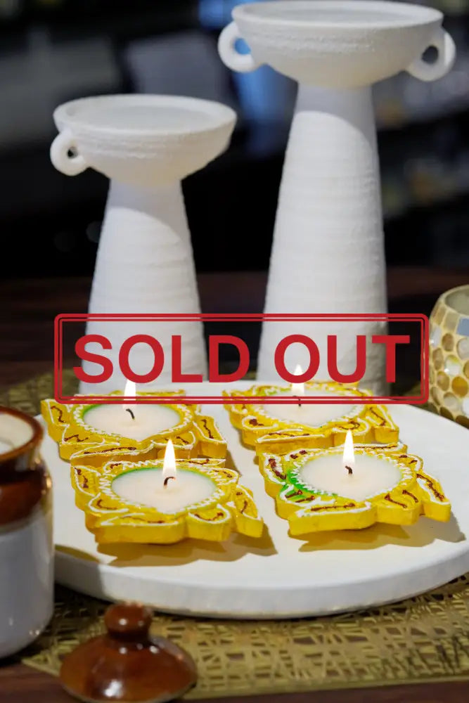 Classic and graceful, this set of four Diya Candles fills your space with the soothing scent of Tuskan Leather. Ideal for pooja setups, gifting, or spreading warm festive vibes.
